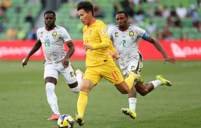 面对喀麦隆,国足进行了变阵,从4231调整为541,吾米提江、朱辰杰、刘浩帆组成三中卫,张玉宁出任单箭头,胡荷韬、杨希分居两边,后卫线除了朱辰杰之外全是U23球员。